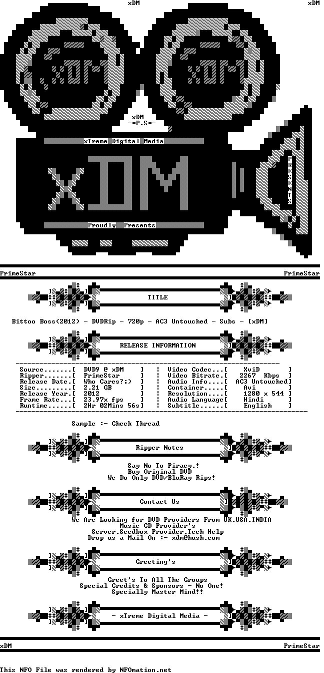 http://extabit.com/file/2dvloxw759hwf/Bittoo Boss (2012) - DVDRip - 720p - AC3 - [xDM][Exclsuive].mkv.001 http://extabit.com/file/2dvloxw759o5r/Bittoo Boss (2012) - DVDRip - 720p - AC3 - [xDM][Exclsuive].mkv.002 http://extabit.com/file/2dvloxw759r8v/Bittoo Boss (2012) - DVDRip - 720p - AC3 - [xDM][Exclsuive].mkv.003 http://extabit.com/file/2dvloxw759xov/Bittoo Boss (2012) - DVDRip - 720p - AC3 - [xDM][Exclsuive].mkv.004 http://extabit.com/file/2dvloxw758vq7/Bittoo Boss (2012) - DVDRip - 1CD - XviD - [xDM].srt